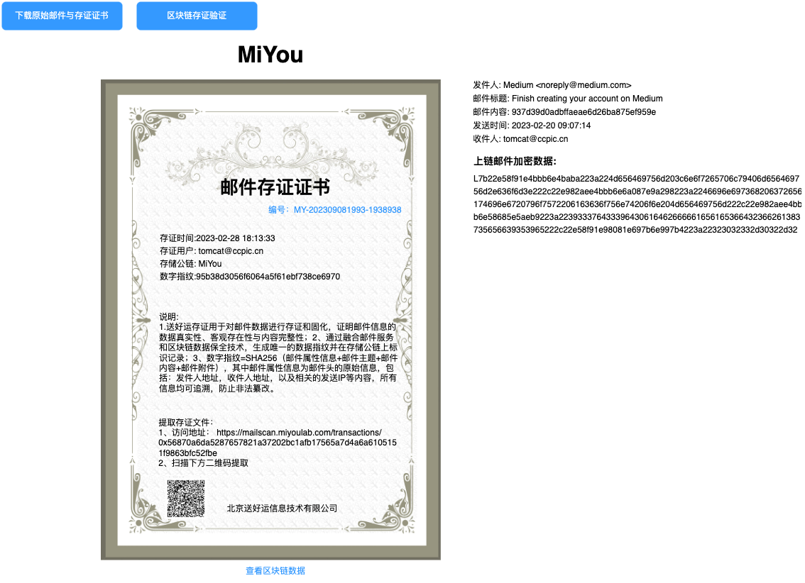 我们已经在邮件系统中实现电子邮件的存证功能,在生产环境中使用2年多时间。